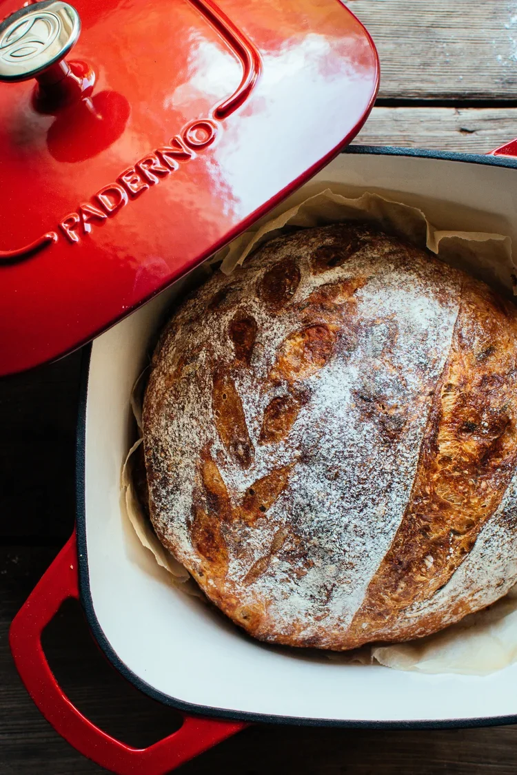 Baking influencer Kelsey created recipes and content for the cast iron roaster No Knead Chedder and Chive Bread.