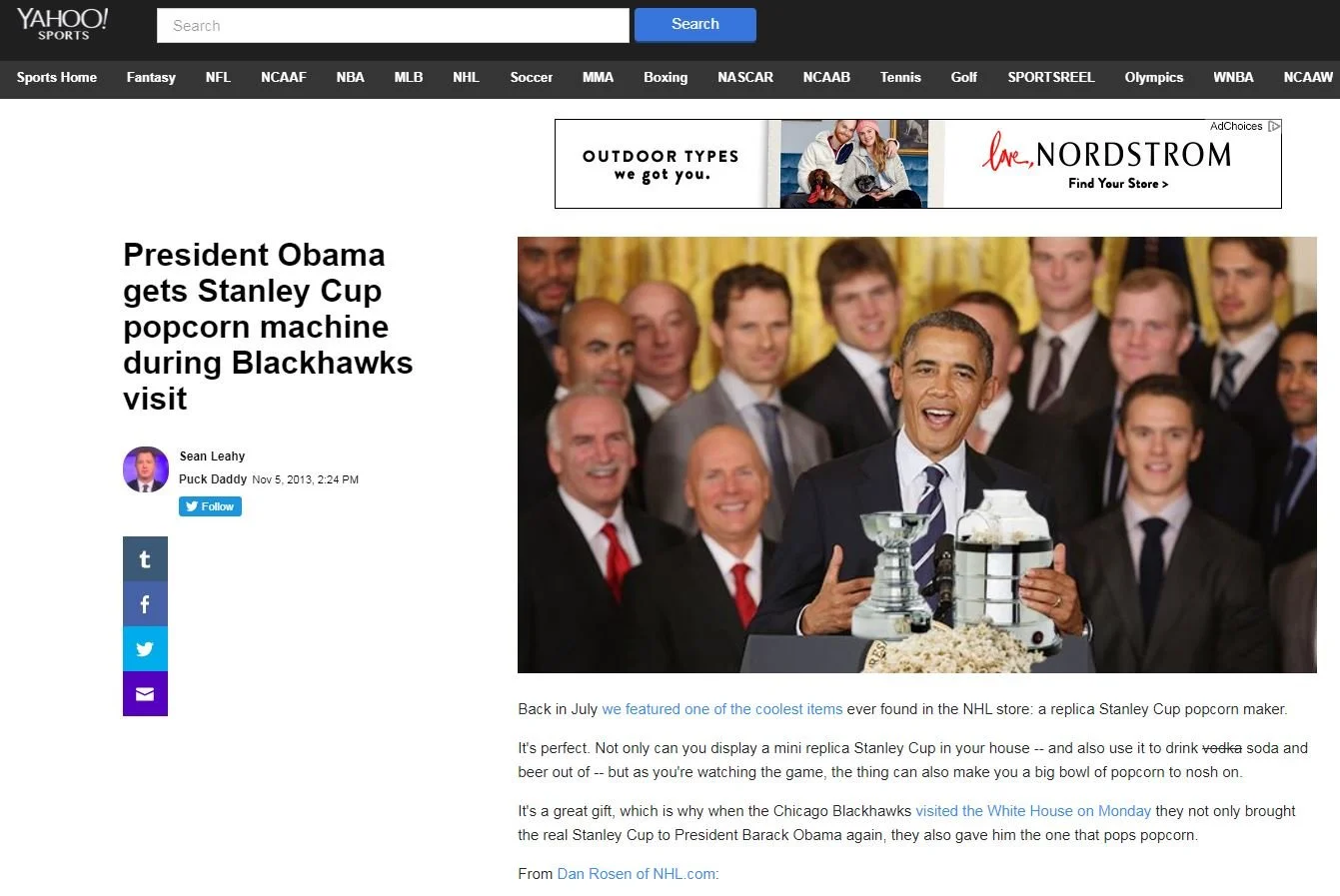 In 2013, when the Chicago Blackhawks visited the White House to celebrate their Stanley Cup victory, a Stanley Cup Popcorn Maker was presented to President Barack Obama.